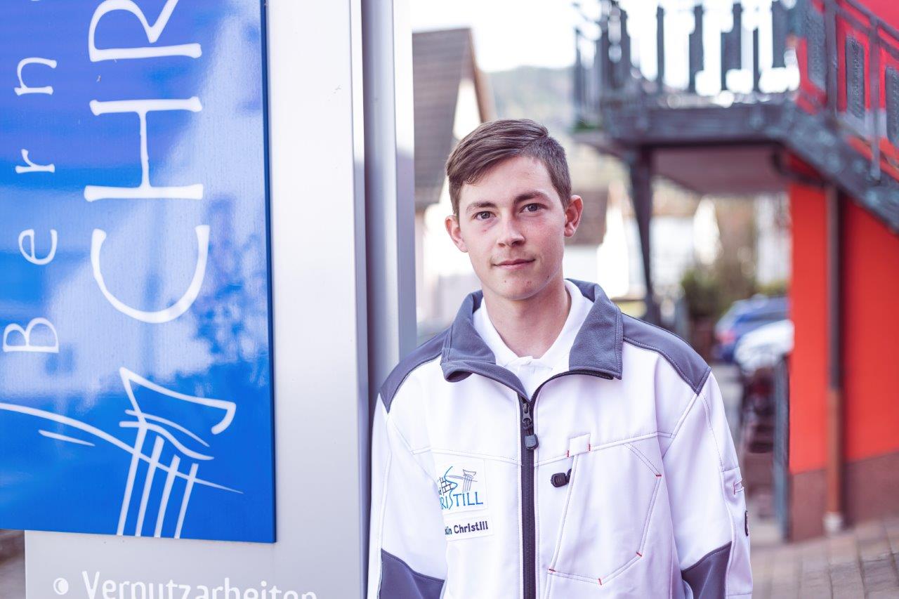 Valentin Christill ist 2019 zur Ausbildung in den Betrieb eingestiegen und hat danach seinen Meistertitel erworben. 2026 übernimmt er gemeinsam mit seinem Bruder Philipp den Betrieb und wird sich mehr um die ganzen Themen außerhalb der Baustelle kümmern, wie Angebotserstellung und Rechnungslegung.